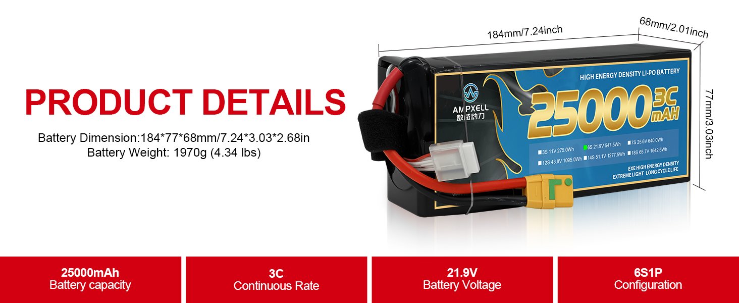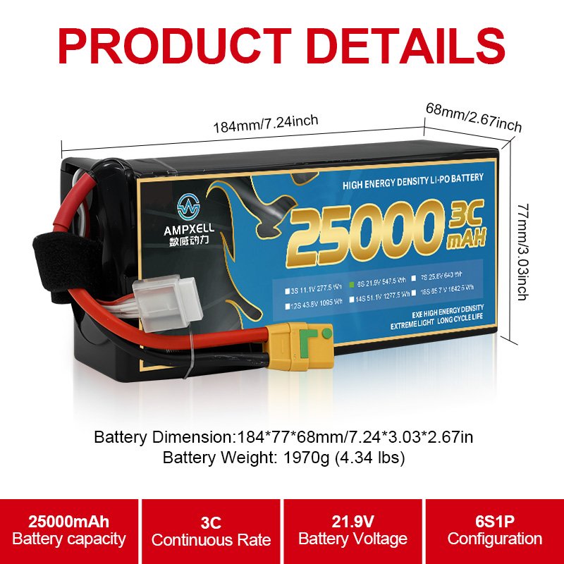 | Spec: | 25000mAh 21.9V 6S1P |